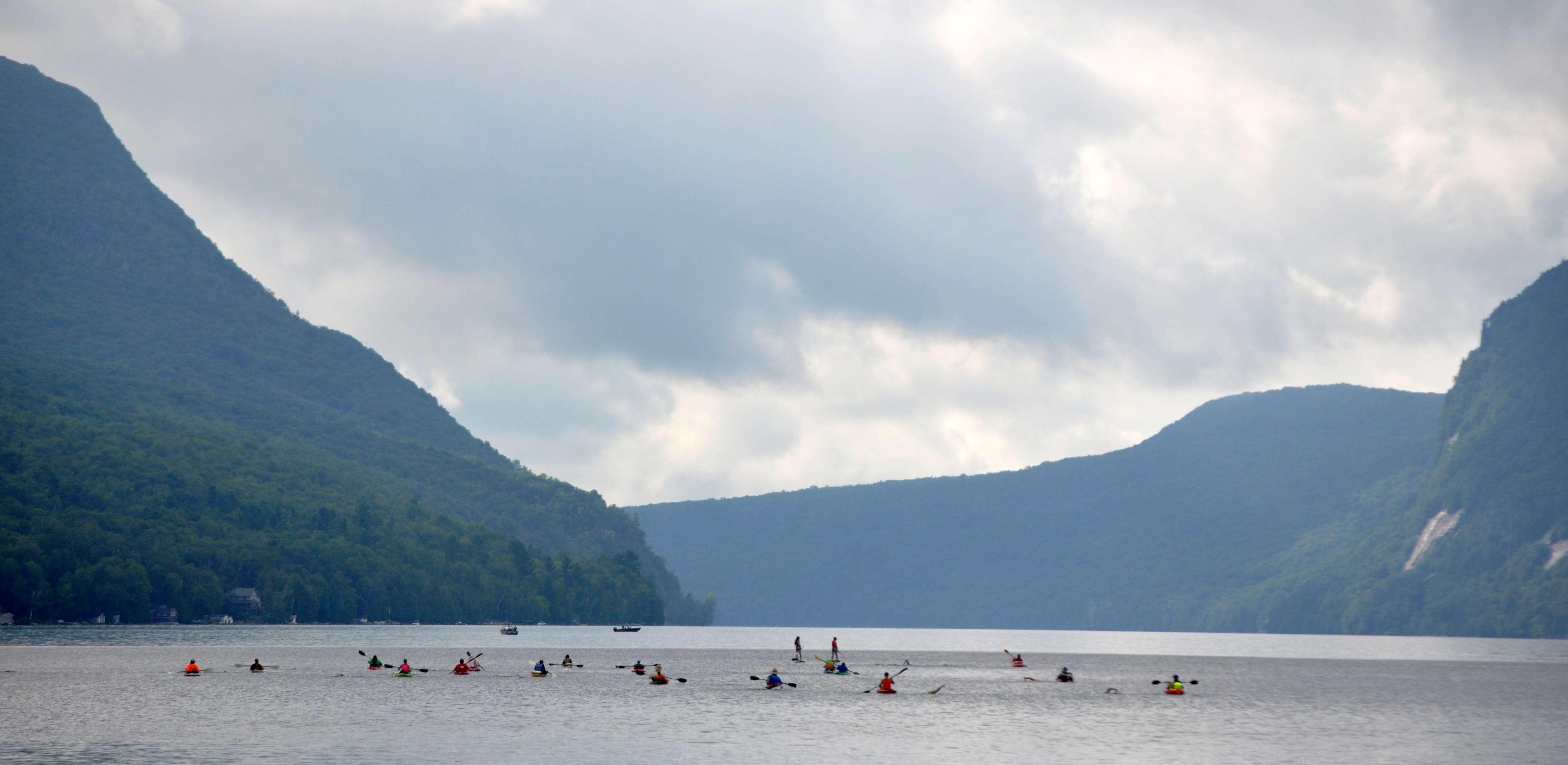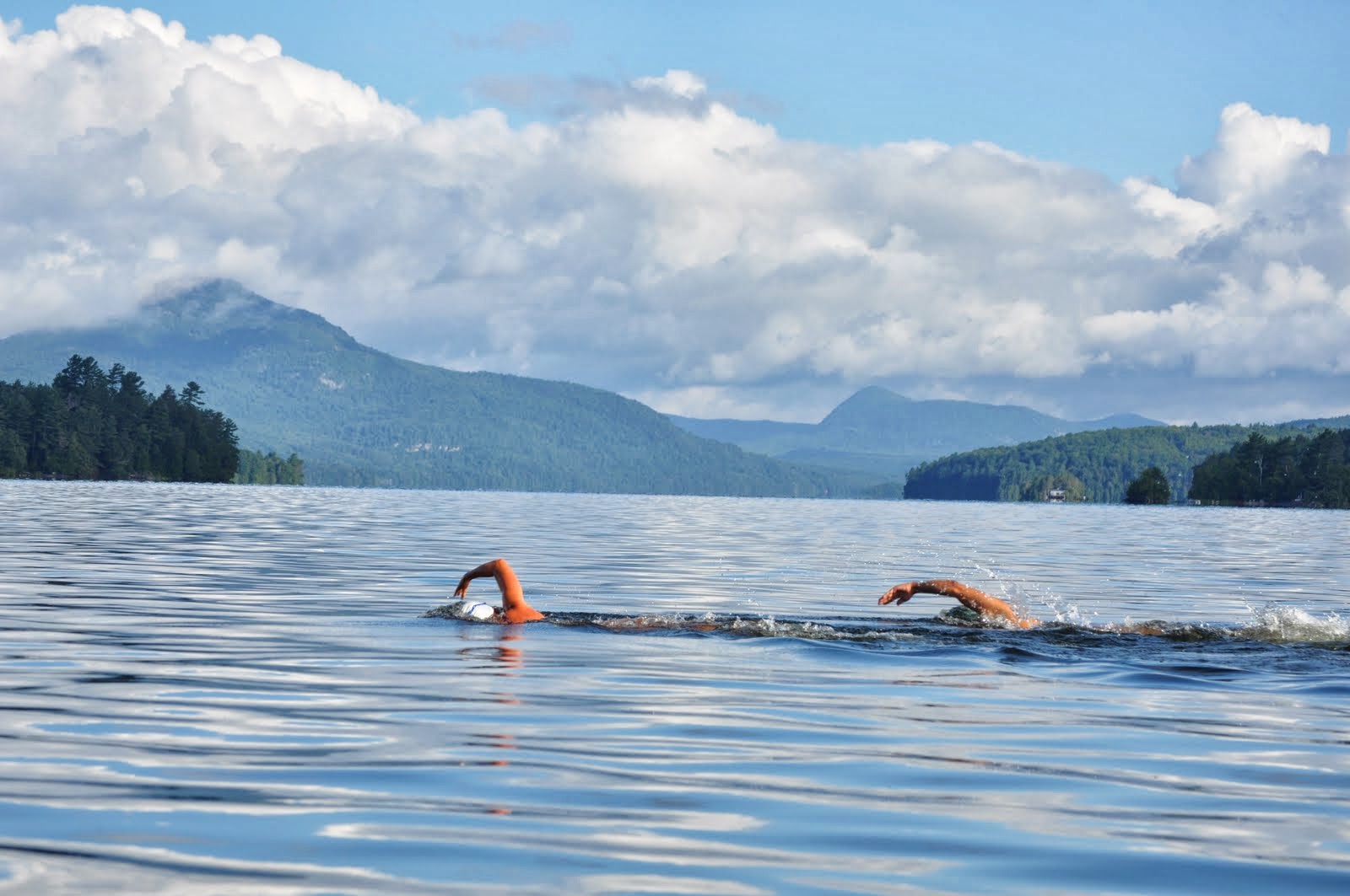The lakes we swim in the Northeast Kingdom have no commercial boat traffic and minimal recreational boat traffic. Water quality is excellent throughout and pristine in most of the lakes we swim. Water temperatures typically range from 68 F to 74 F.