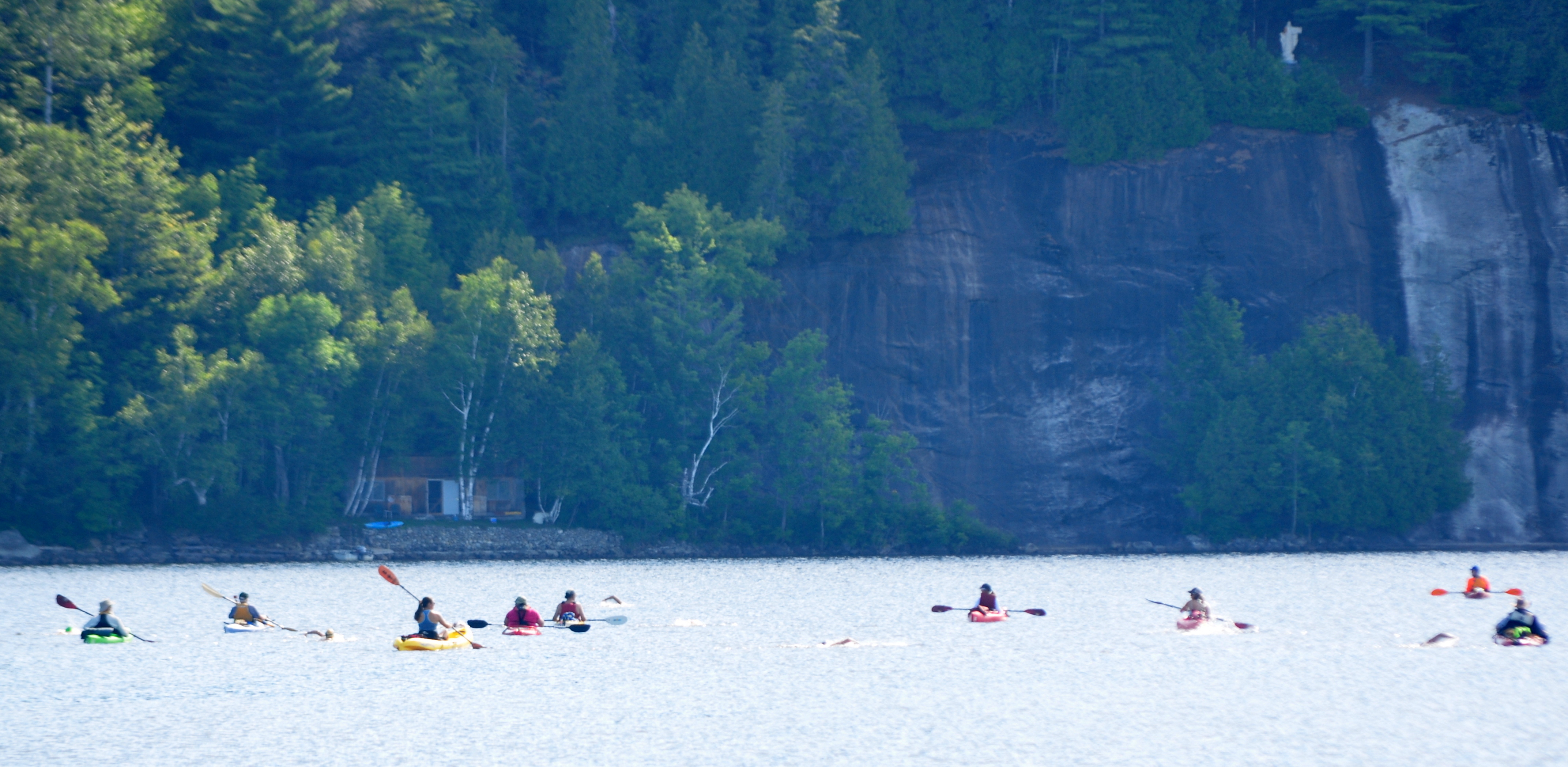 All swimmers must be accompanied by an escort kayaker at each swim. We STRONGLY encourage swimmers to bring their own kayakers with them. We work hard to recruit and retain a group of battle hardened and dedicated kayakers who regularly offer to help out at our swims. We charge $150 for this service per day and in turn pay a stipend to these volunteers. We make them available on a first come first served. So, if you need us to provide a kayaker we encourage you to register sooner rather than later so you can be placed higher on the list.